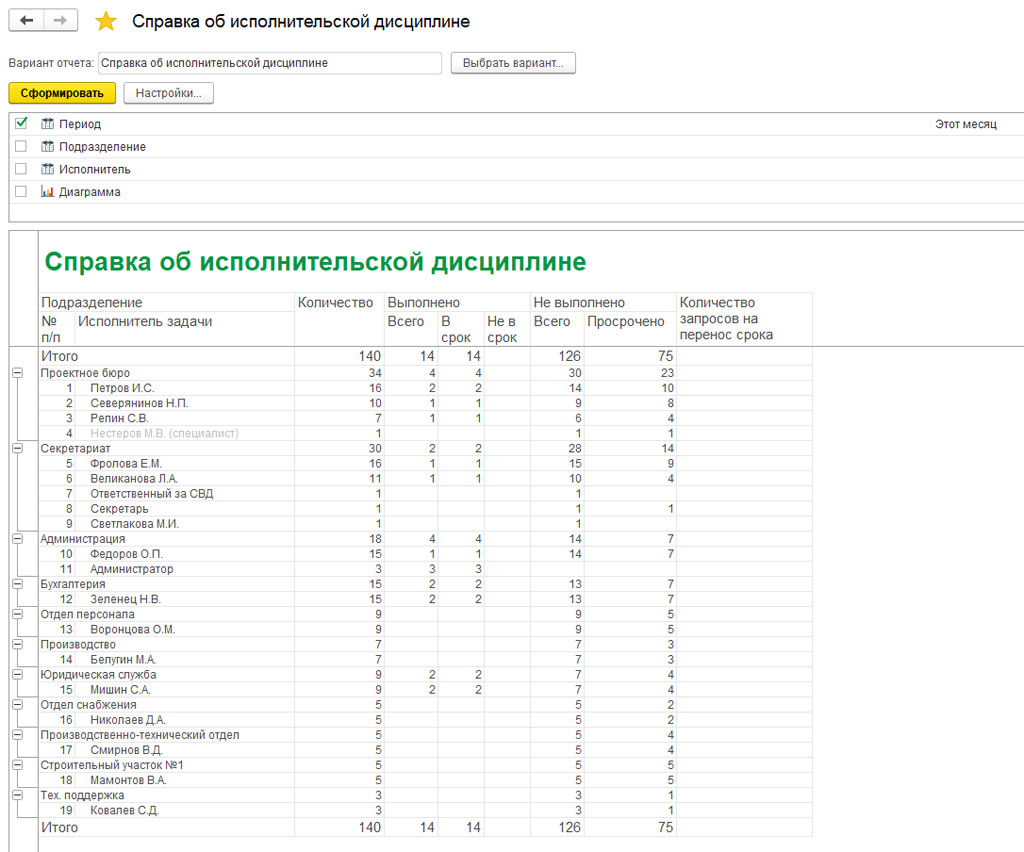 Справка об исполнительской дисциплине, это одна из самых используемых отчетов