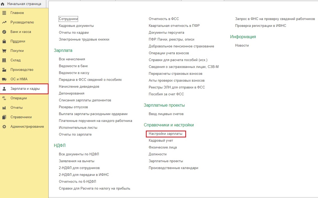 А вот если нужно обозначить простой по вине работодателя или другой причине, то следует создать новое начисление в разделе "Зарплата и кадры" по гиперссылке "Настройки зарплаты".