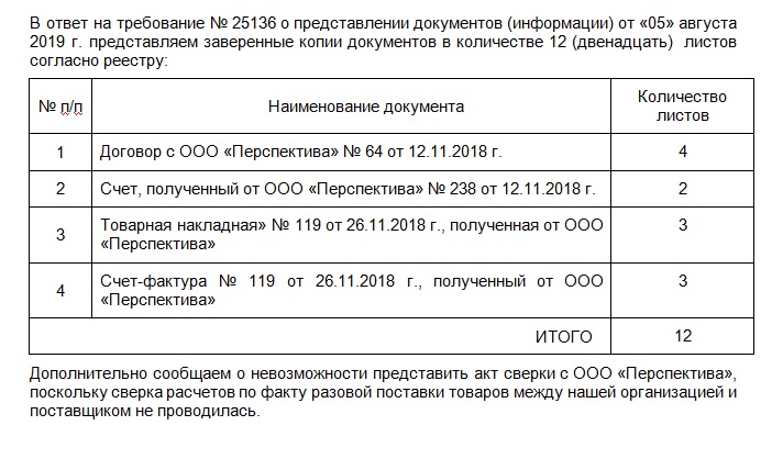 Ответ на требование налоговой о предоставлении документов