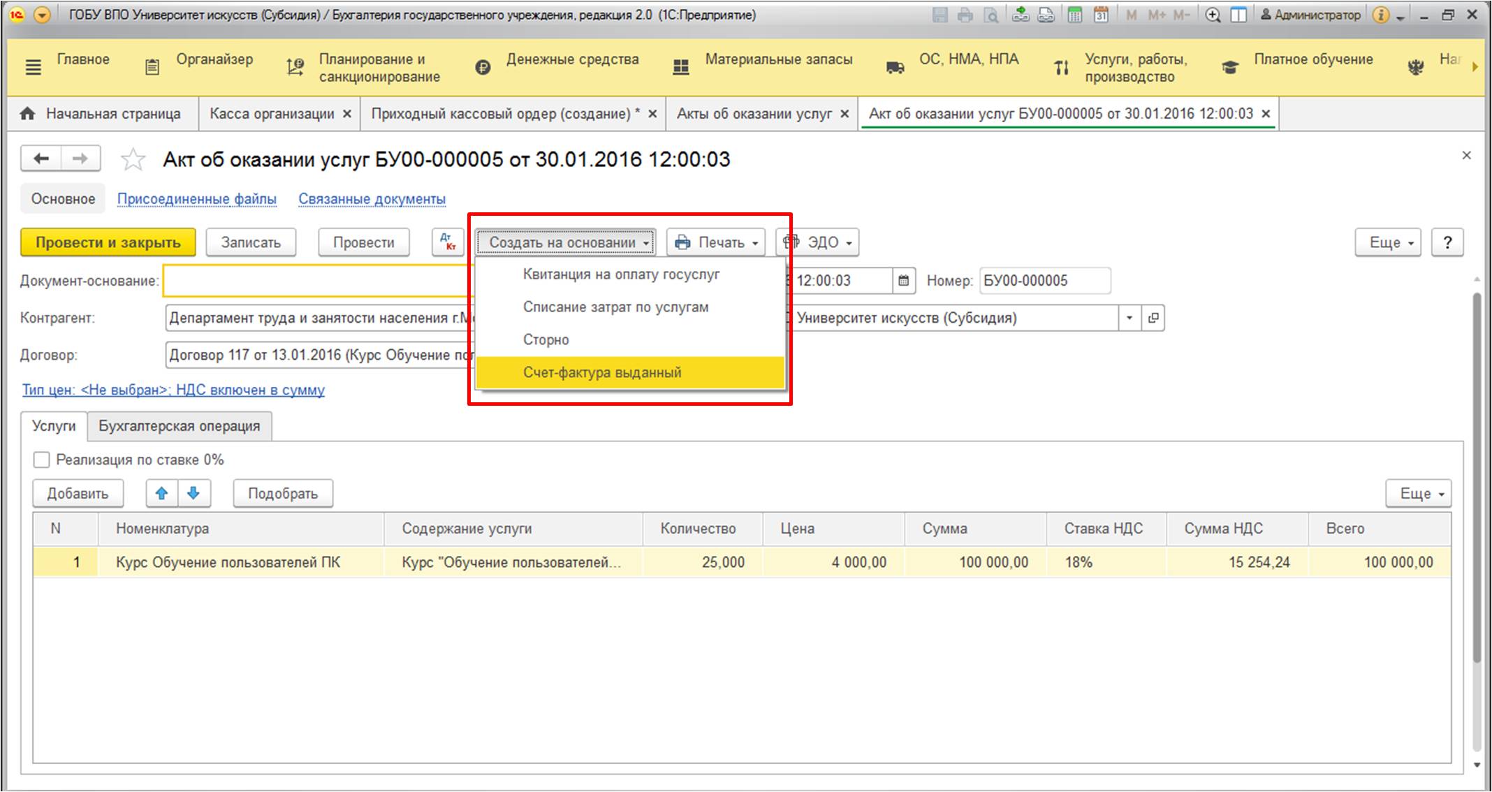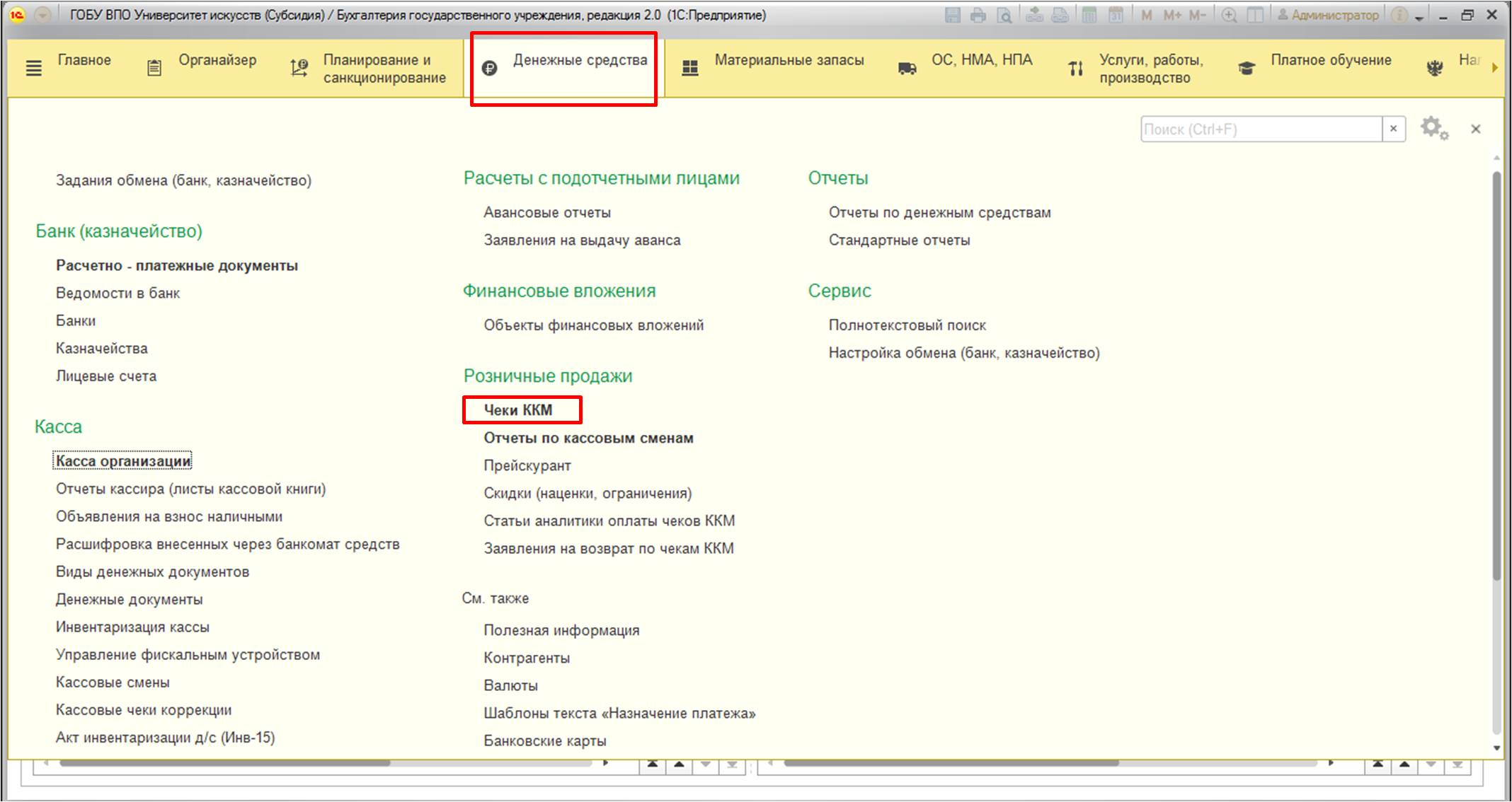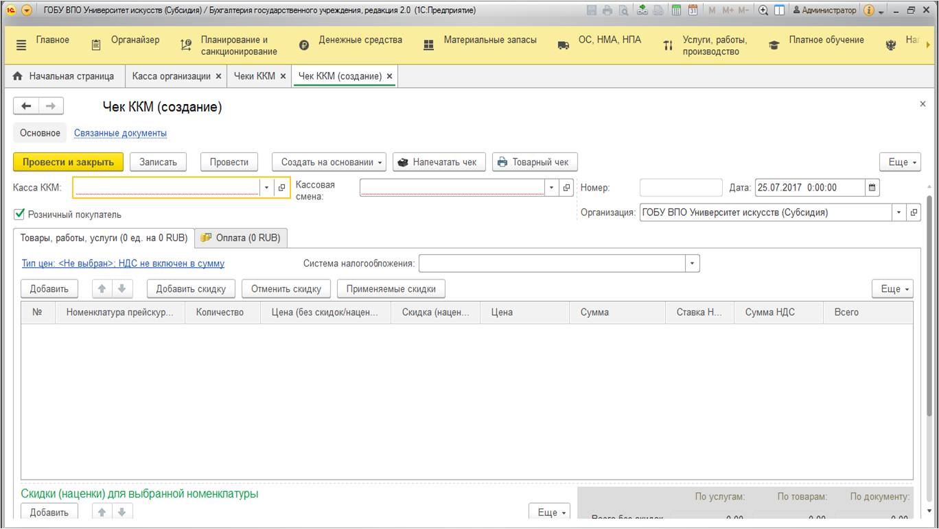 Мы разобрались с тем, что необходимо делать при продаже одного товара или услуги. Но как быть, если один клиент хочет оплатить сразу несколько позиций? В соответствии с законодательством, наименование каждой позиции должно быть в чеке. Для этого следует воспользоваться программой "1С: Бухгалтерия государственного учреждения, редакция 2.0". Она решения поставленной задачи у вас есть два варианта.