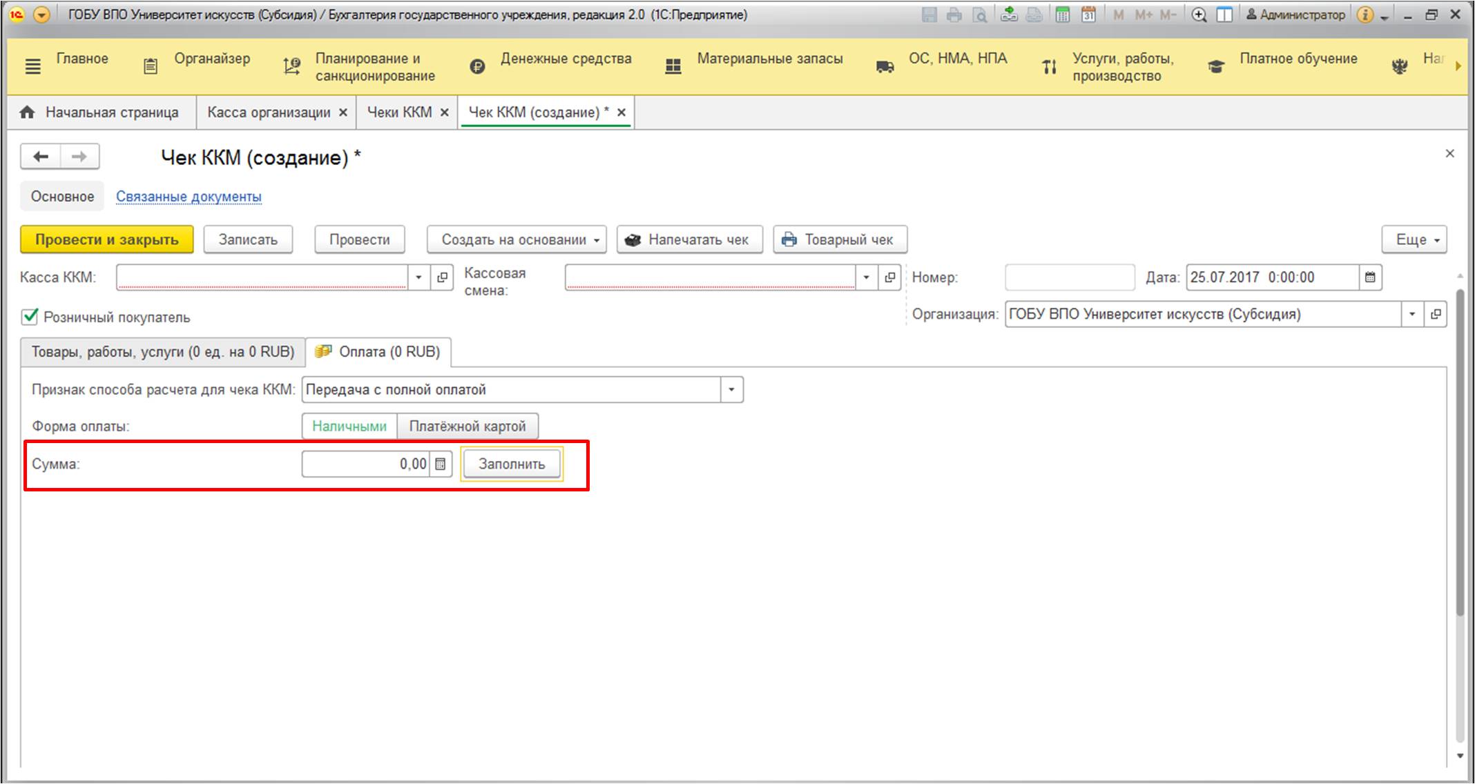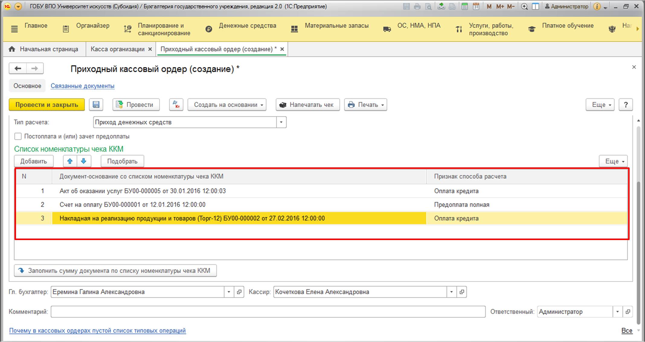 Введенная информация будет распечатана на чеке. В целом, каких-либо существенных нюансов по заполнению больше нет. В конце дня рекомендуется создать "Приходный кассовый ордер" с информацией о всех поступлениях.