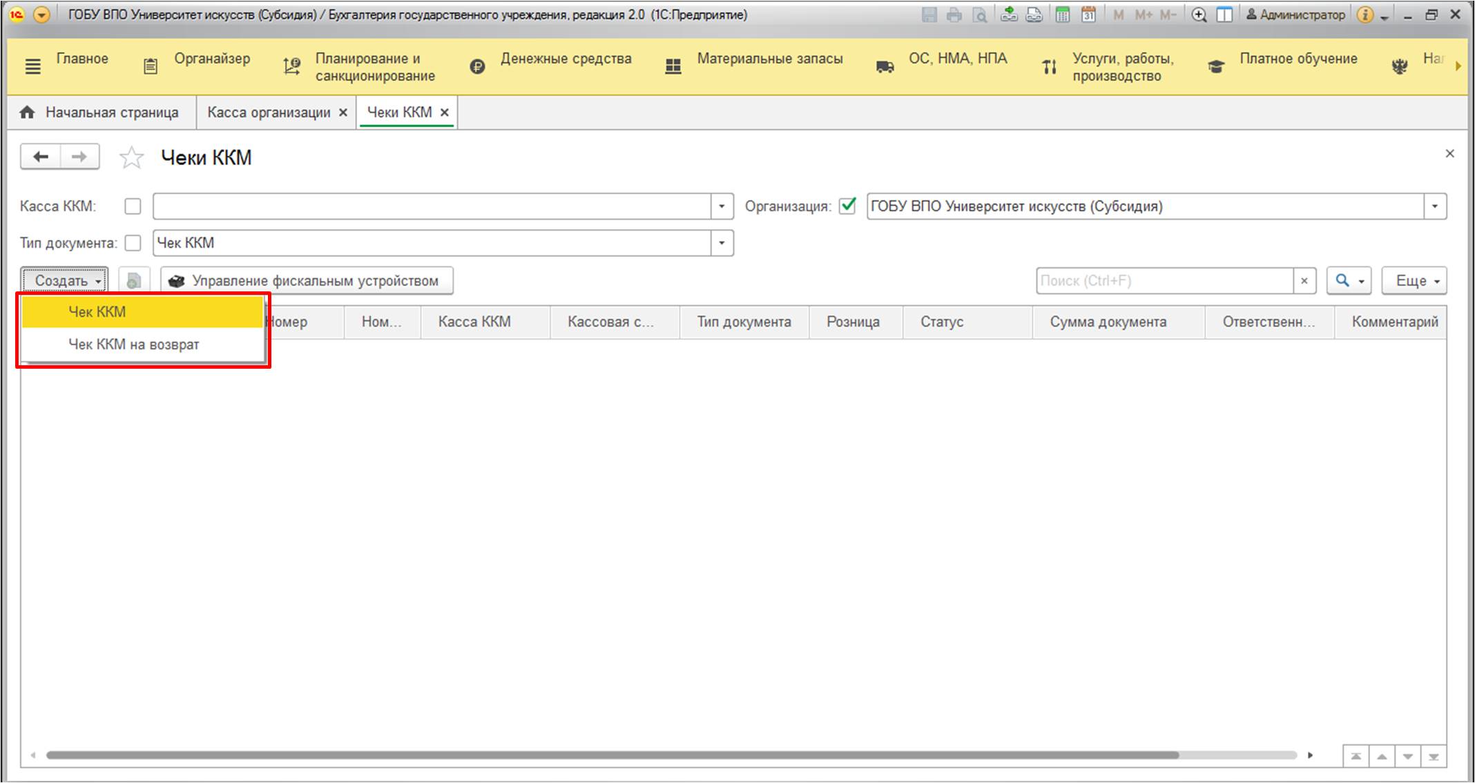И это логично, так как вы можете изменять документы на приход и расход. Вернемся к рассмотрению "Чеков КММ". Они имеют довольно простую формы, интуитивно понятны для большинства. В шапке потребуется заполнить несколько обязательных реквизитов.