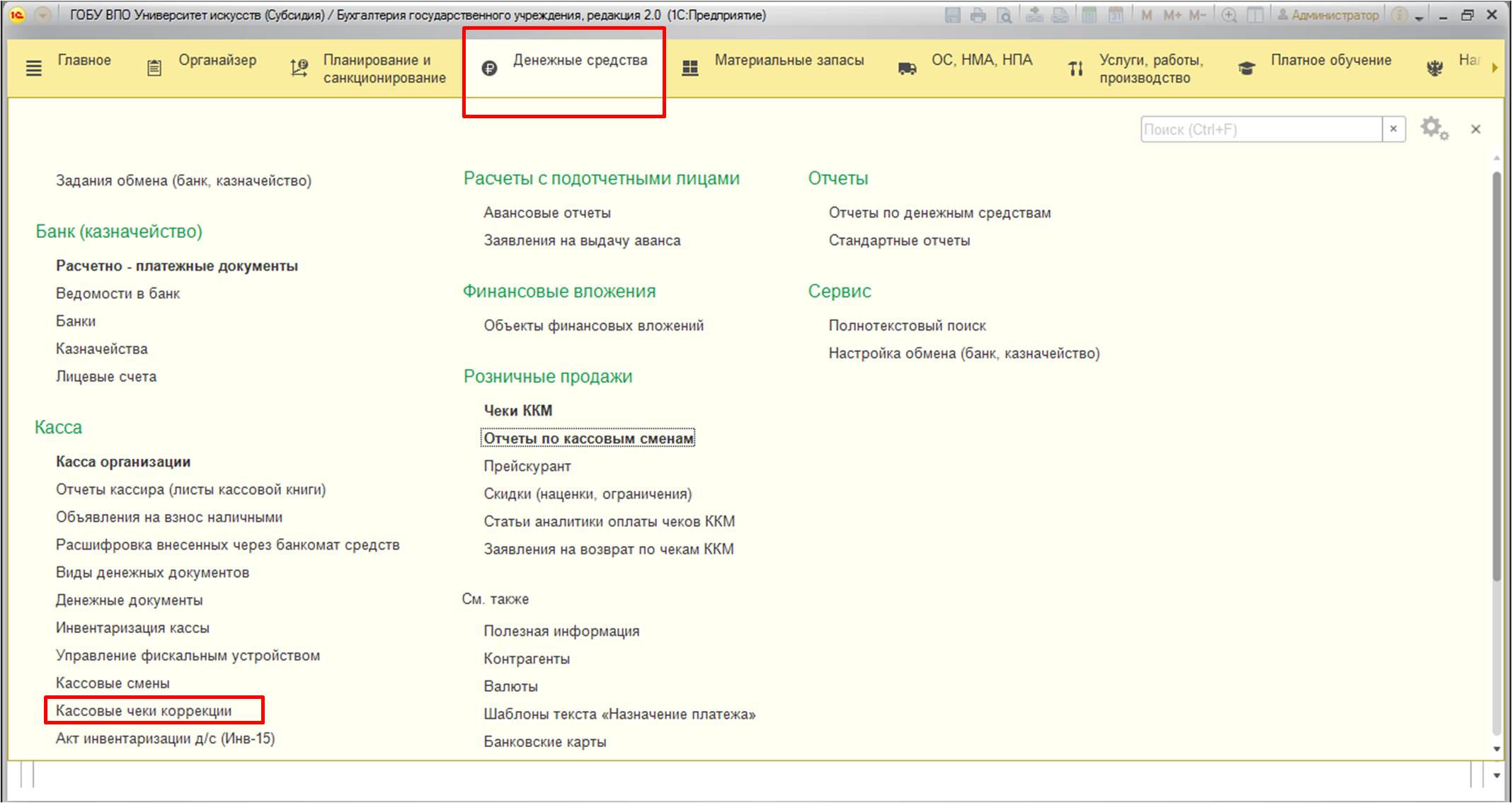 Вам доступны два вида "Кассовых чеков коррекции".