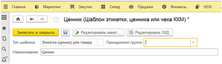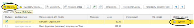 Необходимо выбрать опцию «Шаблон ценника», так как в этом случае в обработке уже будут отмечены все товары. Если такая функция отсутствует, то её можно запросто создать самостоятельно.