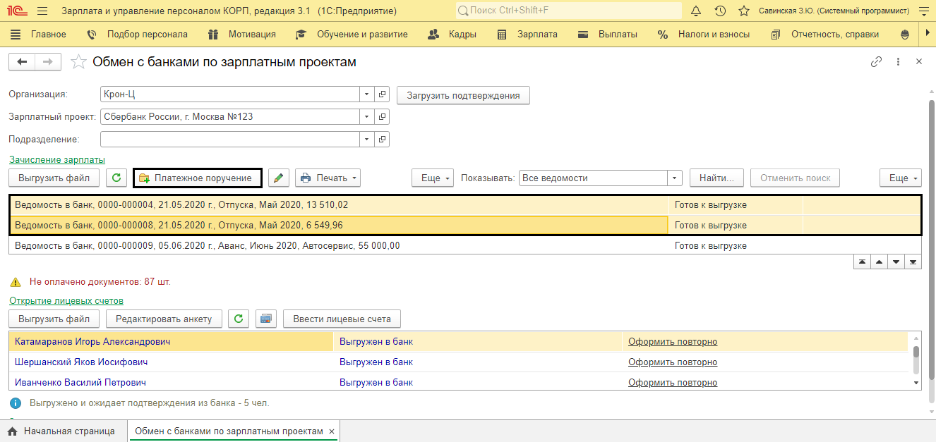 С этого момента можно перейти к формированию документов на выплату (через банк, с использованием реестров либо при помощи платежек).