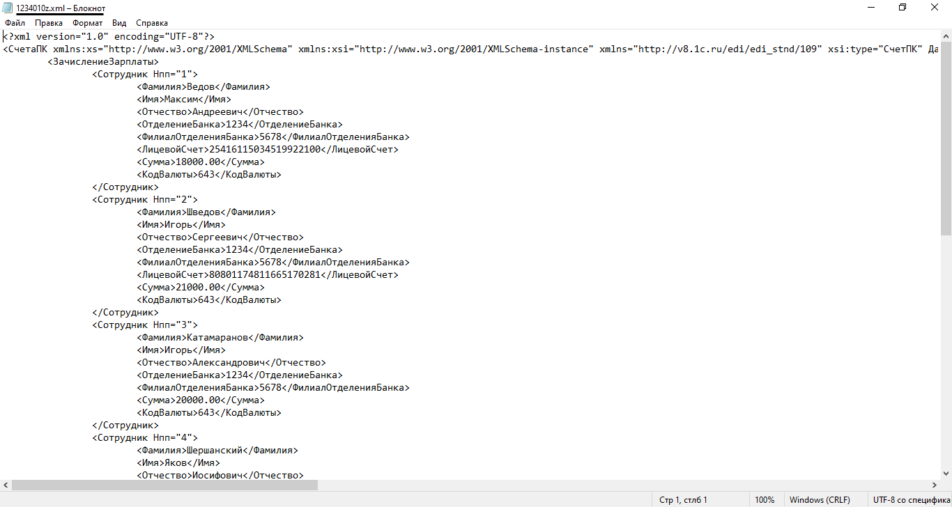 При обмене данными используется формат XML. Любой файл легко открывается в приложении «Блокнот». Для этого по файлу следует щелкнуть правой кнопкой мыши и выбрать опцию «Открыть с помощью».