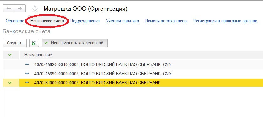 - «Банковский счет» - в графе должен значится нужный валютный счет;