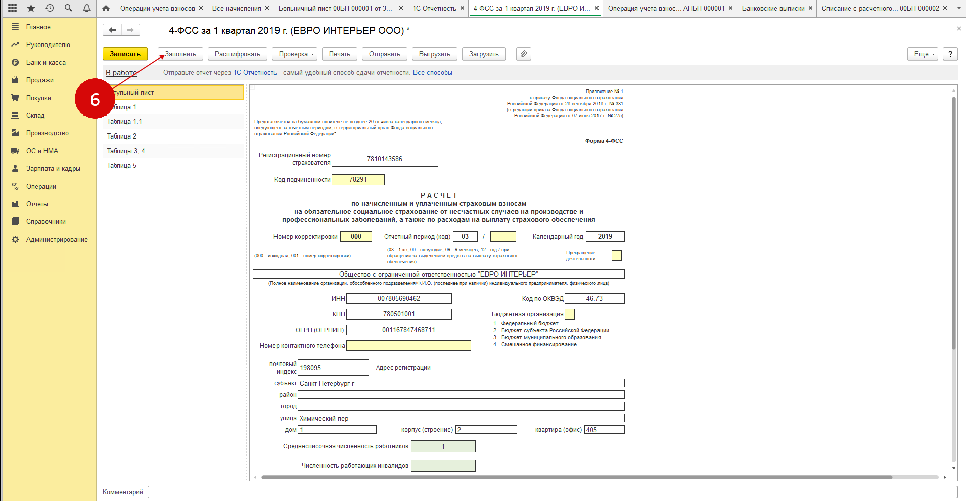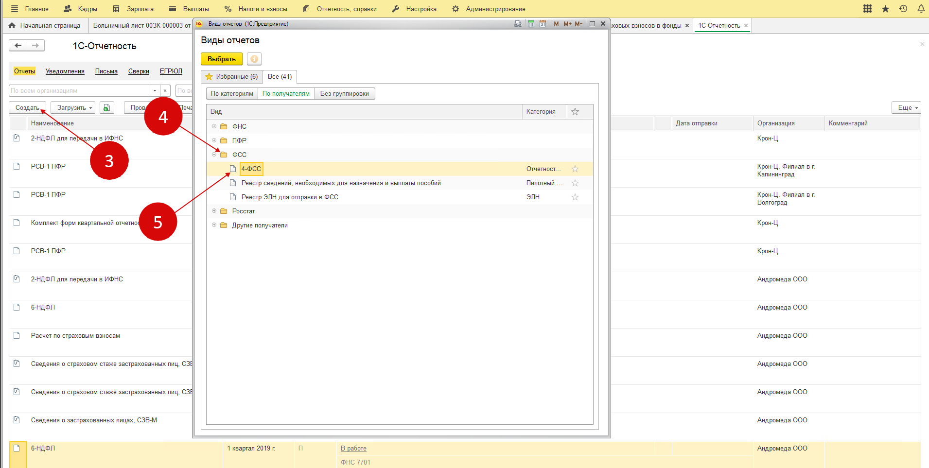 Расчет 4-ФСС в 1С: Бухгалтерия