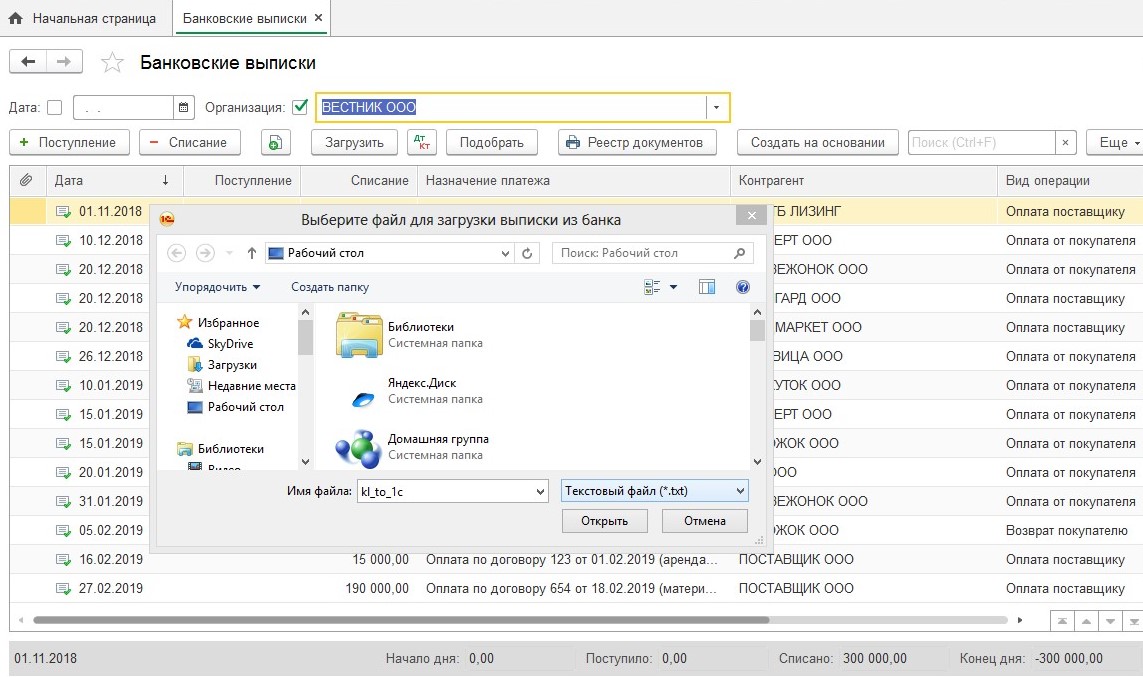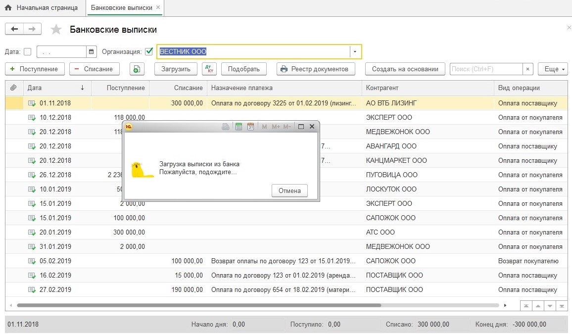 Таким же образом подгружаются выписки по другим расчетным счетам.