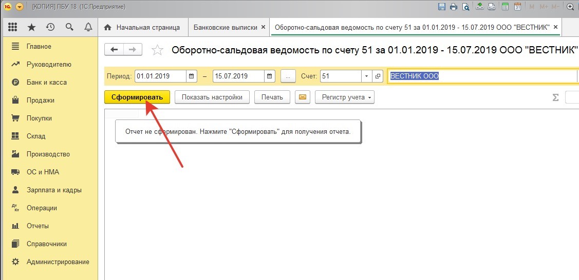 В окне, которое открылось нужно установить необходимый период, выбрать 51 счет и нажать «Сформировать»: