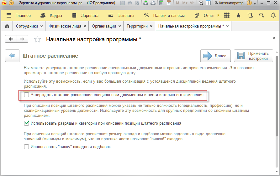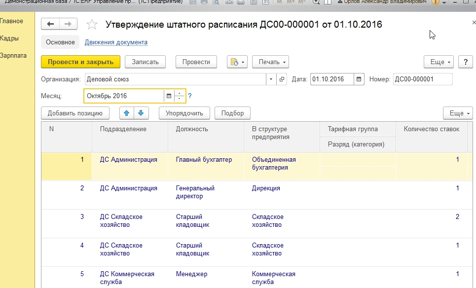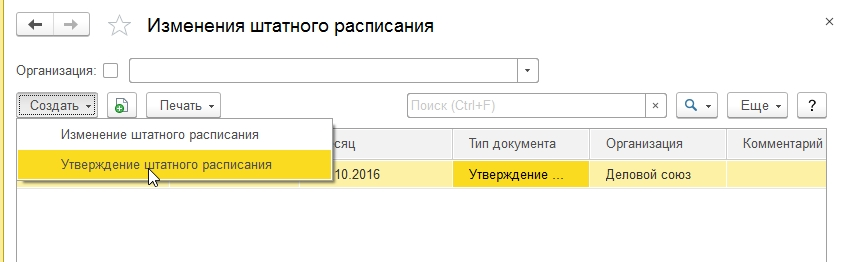 Штатное расписание в 1С
