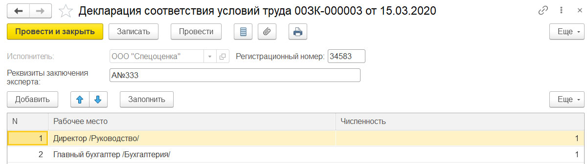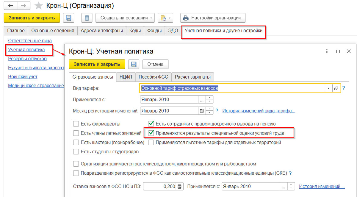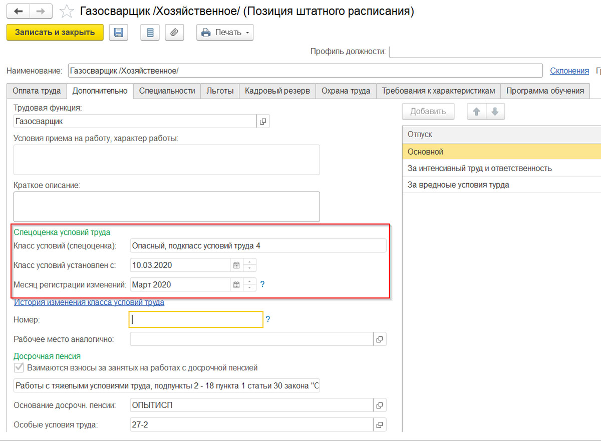 Процедура отражения результатов спецоценки труда в 1С:ЗУП