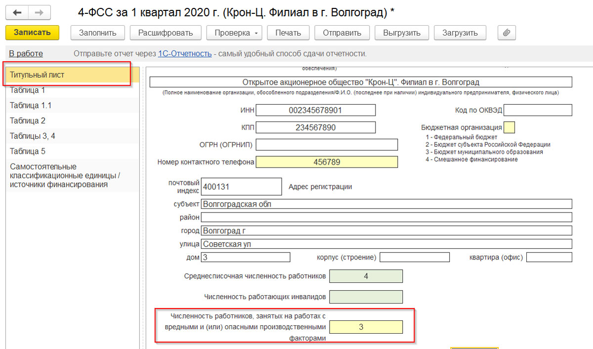Форма 4-ФСС требует ручного заполнения. Все требуемые значения собраны в титульном листе формы.
