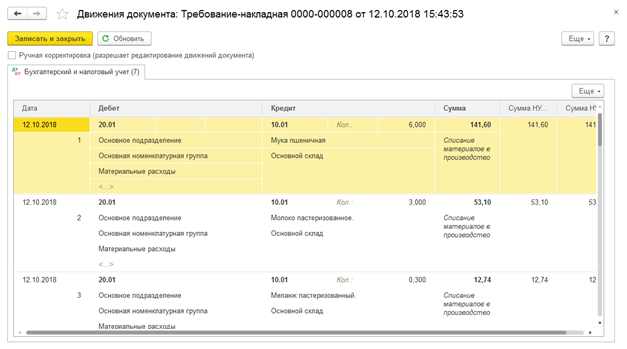 Таким образом, документ «Требование-накладная» выступает в качестве универсального документа как для списания, так и для передачи материалов.