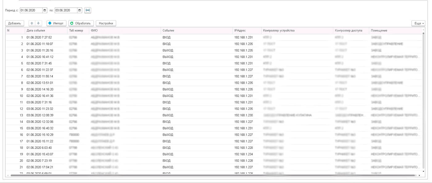 В первую очередь необходимо организовать загрузку данных из СКУД в 1С. Систему можно настроить таким образом, что она будет запускаться автоматически по расписанию или же ручным способом. Кроме того, можно установить фильтры по периоду, работнику, турникету и т.д.
