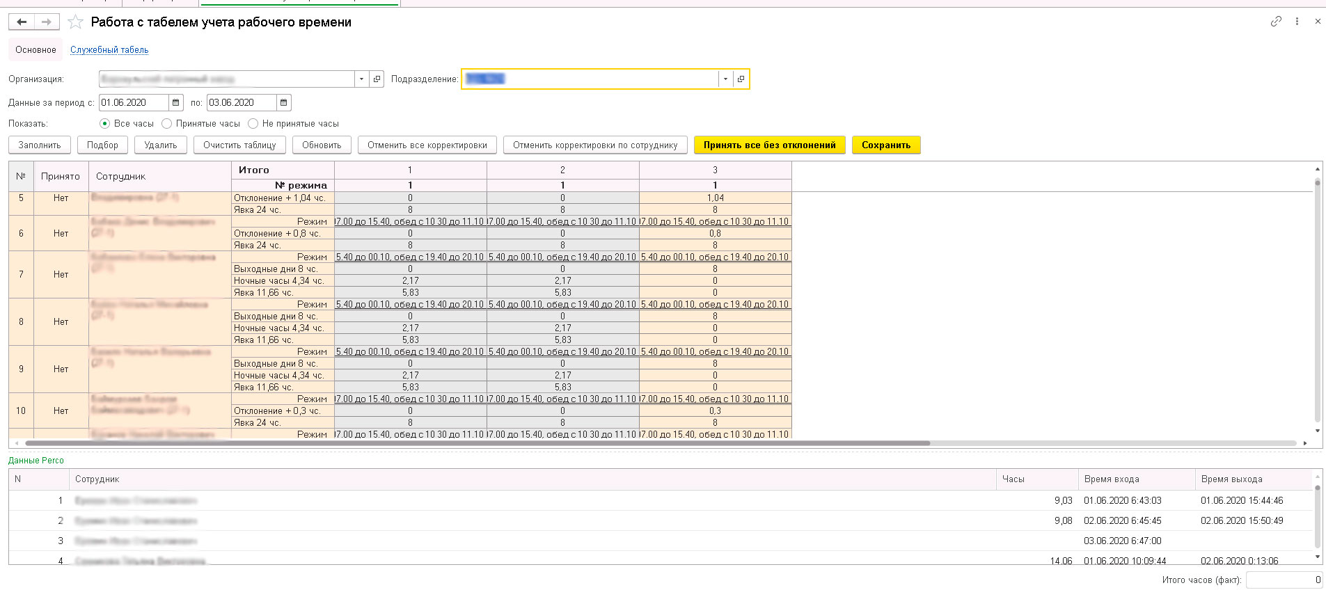 Когда информация о входах-выходах загрузилась в 1С, необходимо в автоматическом режиме проанализировать полученные сведения. Как правило, анализ проводят два раза в месяц, и этот момент связан с расчетом аванса и заработной платы. Однако пользователи вполне могут анализировать информацию и с другой периодичностью.