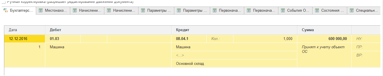 - Событие ОС - здесь нужно указать, что ставится на учет и вводится в эксплуатацию.