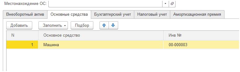 Кликаем на строку Записать и закрыть». Этим методом оформляем вкладку, определяя из перечня новое оборудование, которое отражается в справочнике. Присвоение инвентарного номера будет произведено программой автоматически.