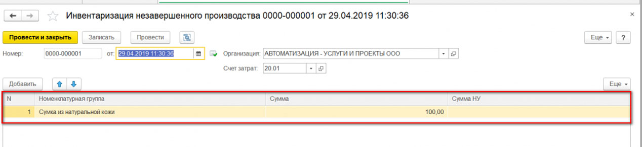 Проведение этого документа необходимо для учета имеющихся на складе полуфабрикатов.