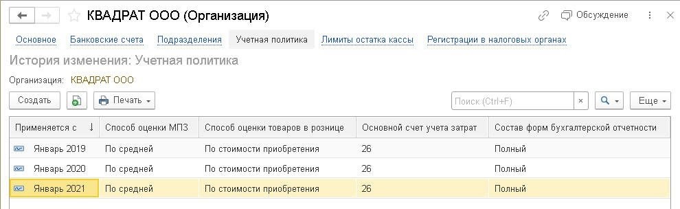Учетная политика в 2021 году в программе 1С:Бухгалтерия 8