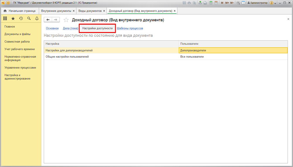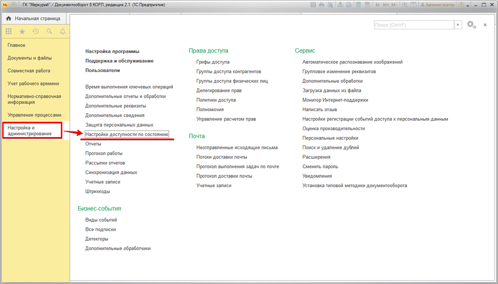 Чтобы настроить права доступа, следует обратиться к разделу «Настройка и администрирование» (п. «Настройка доступности по состоянию»).