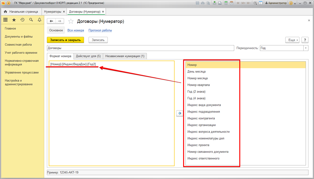 С помощью специализированного конструктора нумерации есть возможность задействовать в номере документа множество определяющих его суть динамических элементов (символов). В результате повысится эффективность работы с документами, ускорится поиск нужной бумаги.