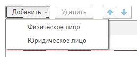Далее приступаем к заполнению таблицы. Жмем кнопку «Добавить», программа в выпадающем списке предлагает нам выбрать в качестве учредителя фирмы, юридическое или физическое лицо.
