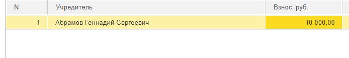 Затем появляется список с названиями лиц, из которого выбираем нужное нам, а также вносим сумму взноса конкретного учредителя.