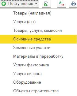 Отразить поступление и приемку к учету полученного основного средства можно с помощью документа «Принятие к учету ОС». Этот документ находится в меню «Покупки-Поступление (акты, накладные)».