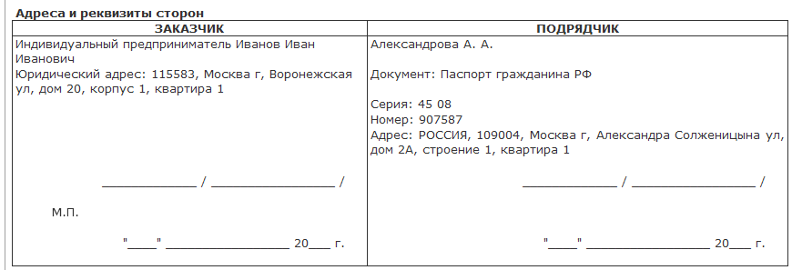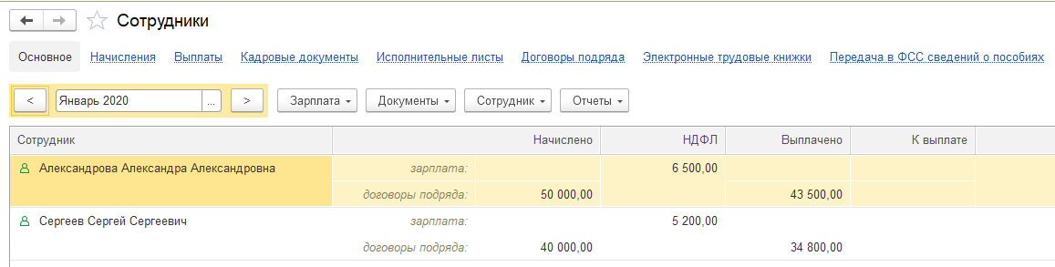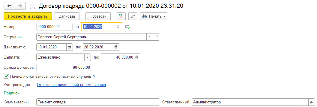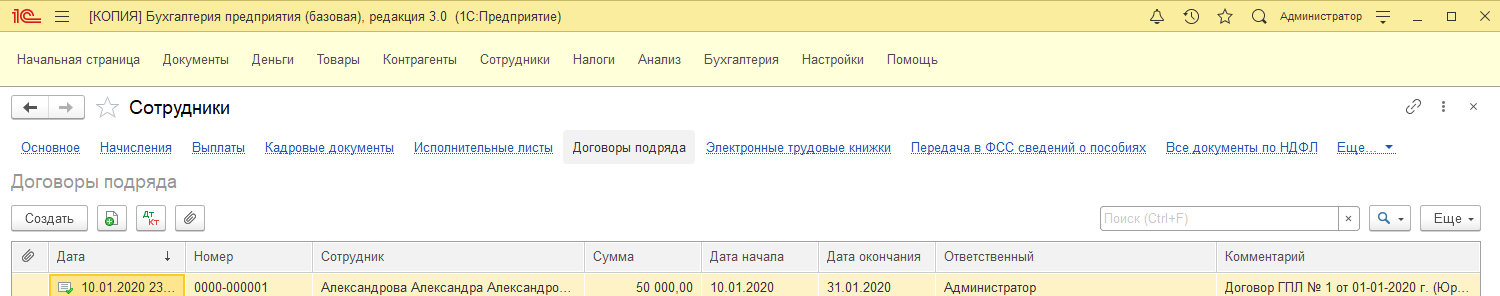 Для иллюстрации возможностей работы с договором подряда (ГПХ, ГПД) рассмотрим два примера: