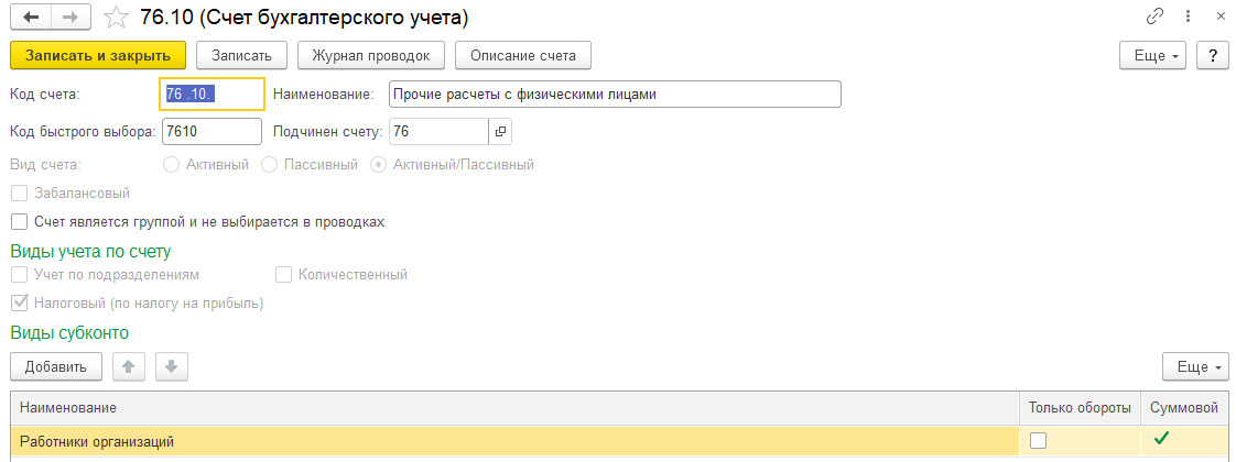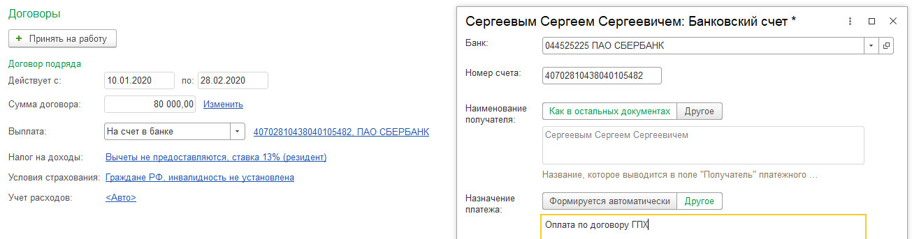 Учет взаиморасчетов с физическими лицами по договорам ГПХ в программе ведется на счете 76.10 «Прочие расчеты с физическими лицами»