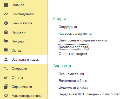 Ключ «Договоры подряда» позволяет производить оформление договоров гражданско-правового характера (ГПХ, ГПД), заключенных с физическими лицами на выполнение работ и оказание услуг