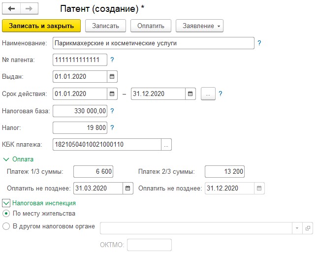 Можно считать этот функционал удобным, так как срок патента может составлять от одного до двенадцати месяцев. Естественно, по завершению срока надо или подавать новую заявку, или менять режим.
