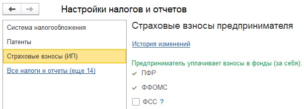 Снова перейдем к настройке налогов и отчетности, закрыв окошко со списком патентов.