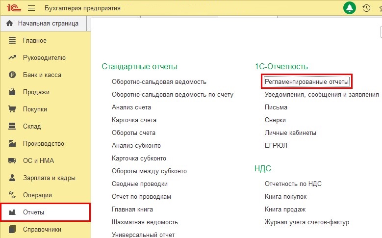 Или в разделе «Отчёты», нажать «Регламентированные отчёты» (для 1С: Бухгалтерии предприятия, ред. 3.0).