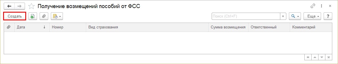Шаг 3. В документе «Получение возмещения пособий от ФСС» укажите: