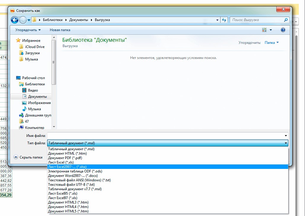 Это стандартное окно для сохранения документов. Здесь необходимо будет задать название файла, выбрать его формат (docx, xml, xlsx, pdf, txt и пр.) и путь, куда необходимо сохранить готовый документ.