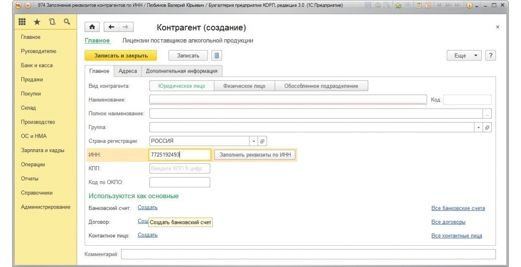 При наличии договора ИТС уровня ПРОФ подключим сервис 1С:Контрагент бесплатно.